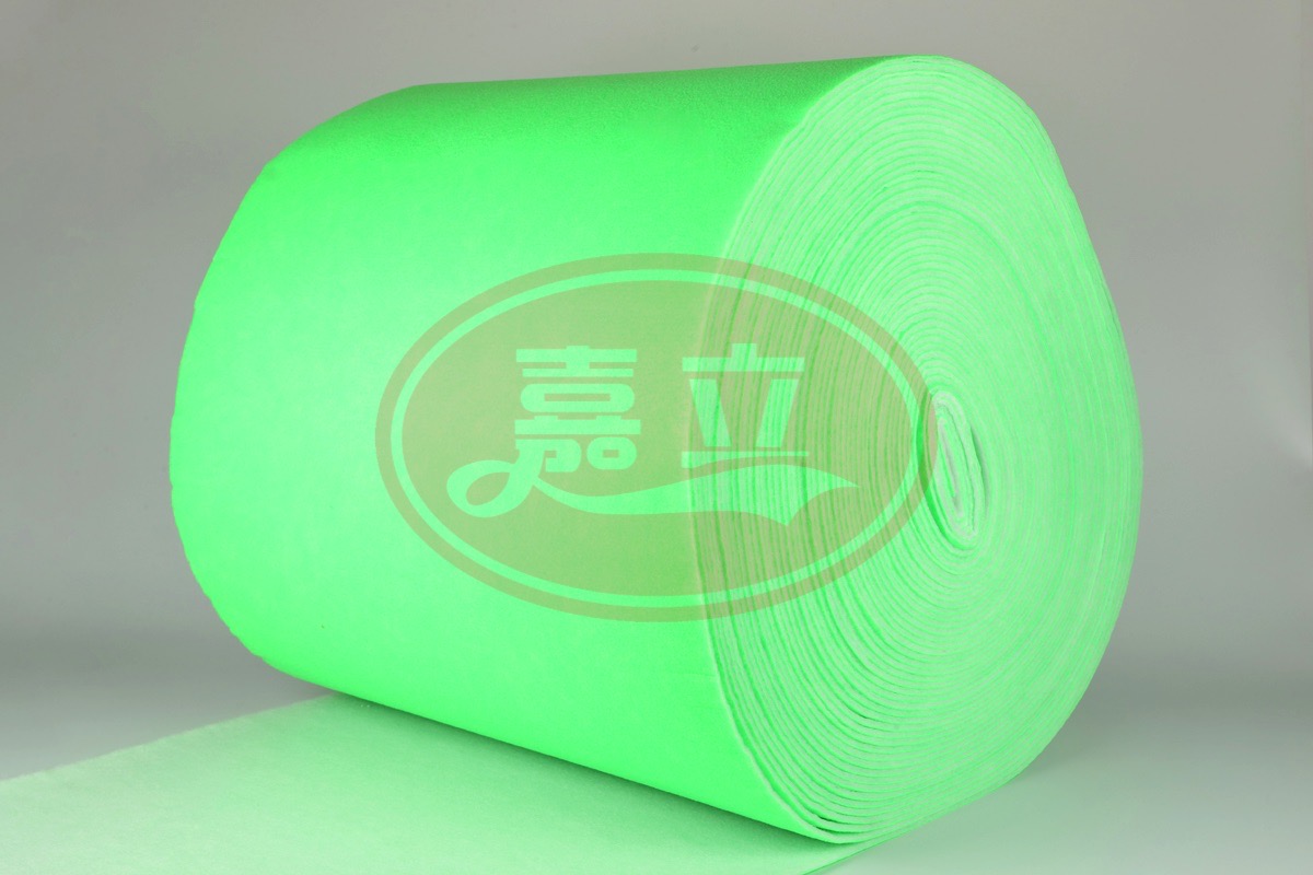 绿白过滤棉主要应用在洁净室的中级过滤段,主要用于过滤1-5μ以上的尘埃粒子,多用于中效空气过滤器产品的滤